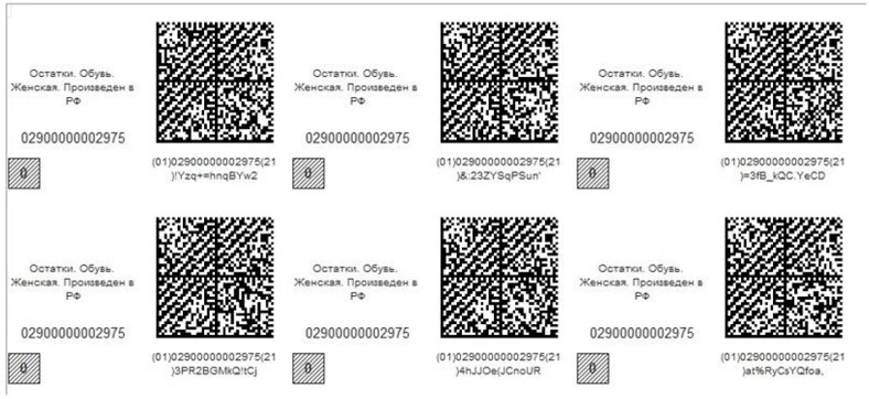 Внешний вид этикеток практически не отличается друг от друга, так как им соответствует одинаковый GTIN. Однако маркировочные коды для каждой пары отличаются.