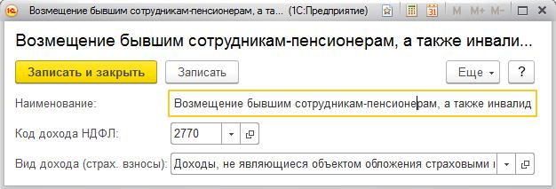 Материальная помощь облагается подоходным налогом и страховыми взносами различно, поэтому необходимо настроить справочник «Виды выплат бывшим сотрудникам»:
