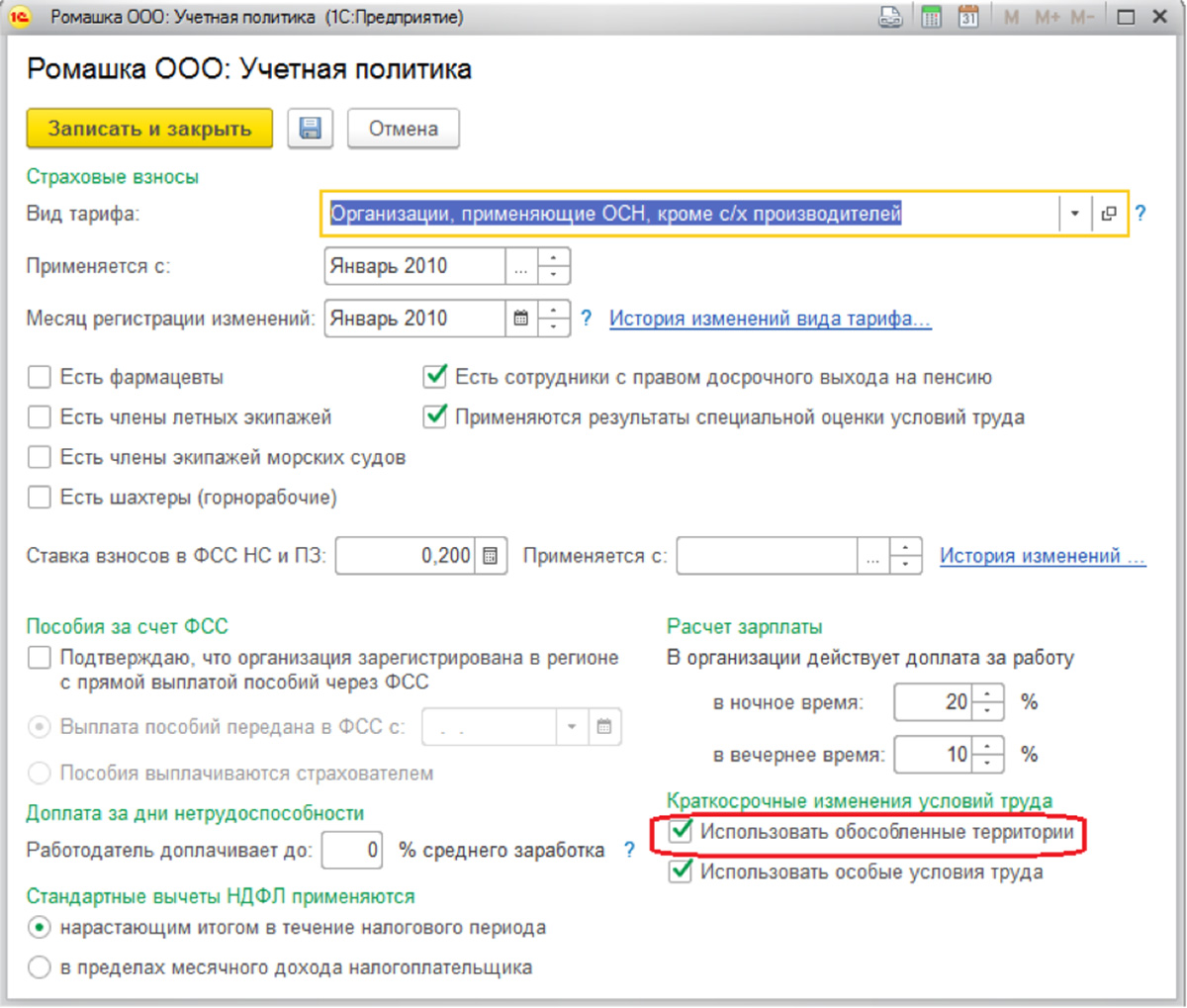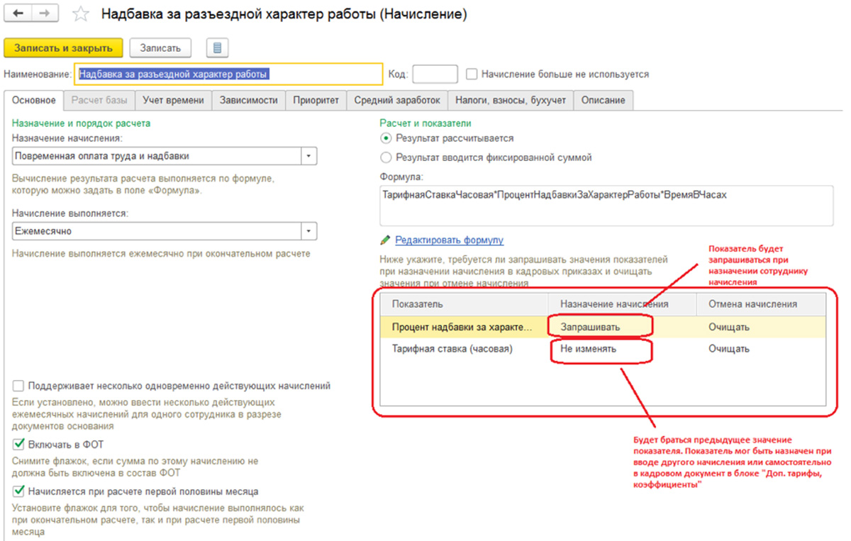 - Включение в ФОТ. Если выбрана эта настройка, начисление будет включено в фонд оплаты труда.