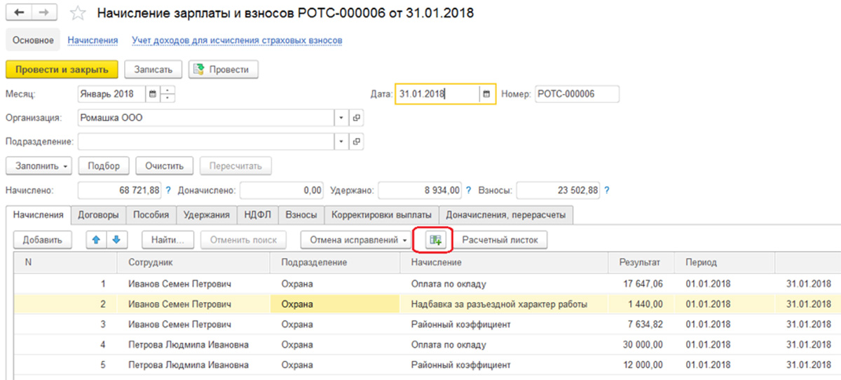 Для расчетов, которые относятся к заработной плате, предназначен раздел «Начисление зарплаты и взносов». Чтобы посмотреть показатели, которые применены как основание для расчета различных начислений, нужно нажать кнопку «Подробно» в таблице