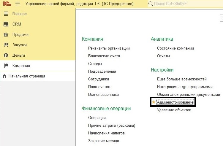 Для начала зайдите в раздел Администрирование (рис 1). Далее выбирайте раздел «Компания» - блок «Настройки» (рис 2). Здесь обратите внимание на закладки, которые будут необходимы для работы. Далее выбирайте раздел «Компания» - блок «Настройки». Здесь обратите внимание на закладки, которые будут необходимы для работы.