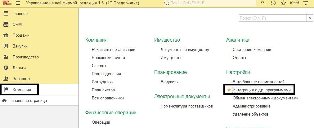 Для этого в разделе «Компания» выбирайте «Интеграция с другими программами» (Рис 11).