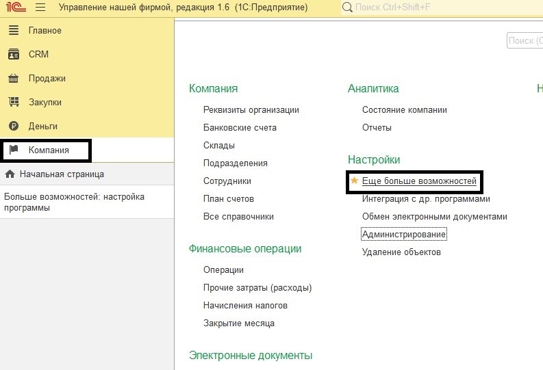 Разобраться в полезном функционале можно при помощи раздела «Компания», далее «Еще больше возможностей». (рис 3)