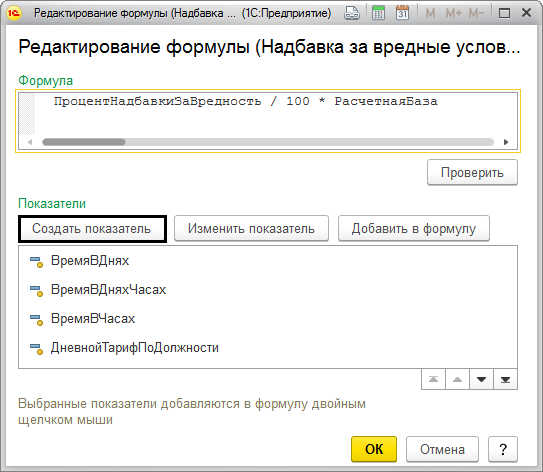 Настраивая формулу, можно добавить собственные показатели для расчета и соответственно добавить их в формулу расчета.