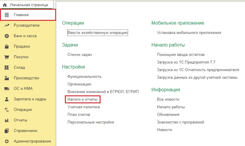 • зайти в раздел "Настройки", затем в "Организации" (если программа используется для нескольких компаний) или "Реквизиты организации" (если программа используется для одной компании);