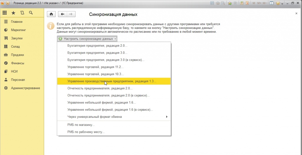 Узнаем, как интегрировать базы данных, взяв для примера утилиты 1С: Розница и Управление Производственным Предприятием (аналогичным образом можно будет выполнить настройку обмена с 1С: Управление Торговлей). Кроме того, к стандартному обмену данными относится синхронизация между УПП и УПП, которая выполняется на крупных промышленных предприятиях в случае с масштабными систем автоматизации.