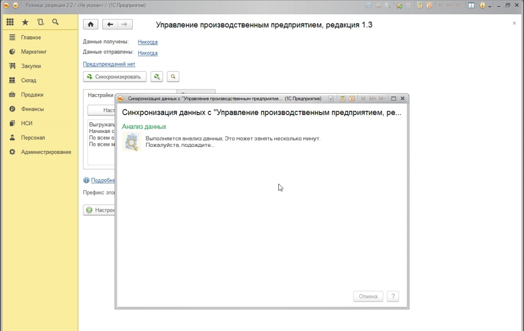 Процедура синхронизации данных в 1С успешно подошла к концу.