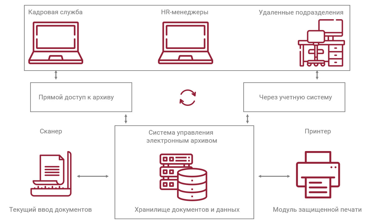 Электронный архив работает так, что изменить файлы и получить доступ к ним может лишь автоматизированная система. Пользователи могут только читать документацию. Документы хранятся на информационном носителе, с помощью которого можно выполнять резервные копии на иных носителях. Сервера будут располагаться на различном физическом оборудовании. При проблемах одного сервера, например, при затоплении машины, с восстановлением документов с помощью резервных копий не возникнет никаких сложностей.