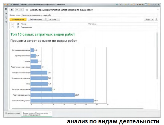 • анализ трудозатрат — для анализа плановых и фактических трудозатрат;