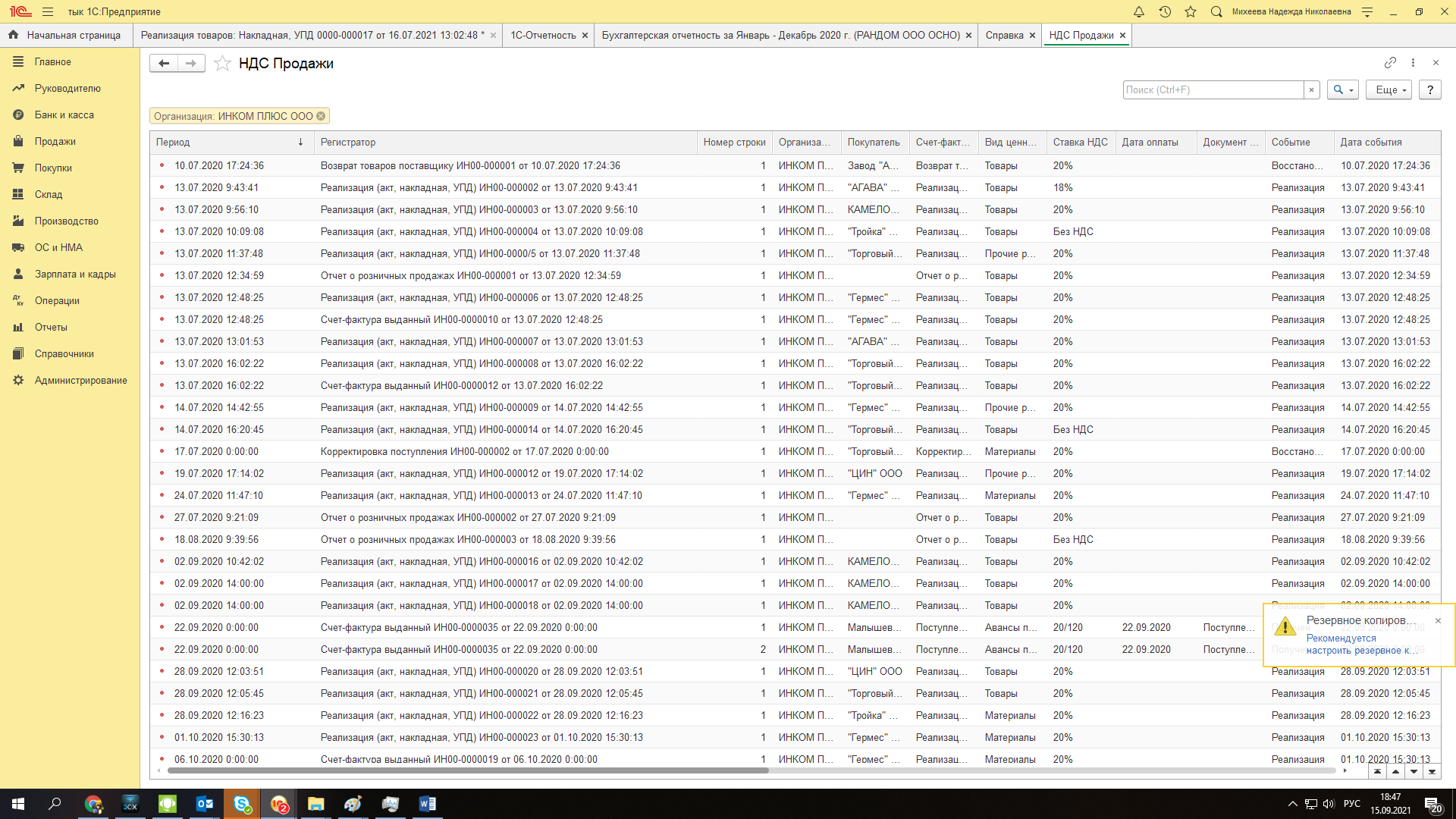 В разделе 3 сведения заполняются автоматически. Строки 010-100 формируются на основании регистра накопления «НДС продажи». Информация здесь вносится на основании проведенных документов, в которых есть НДС при продажах («Реализация товаров», «Отчет комитенту», «Возврат товаров поставщику» и др.) Для проверки регистра нужно: