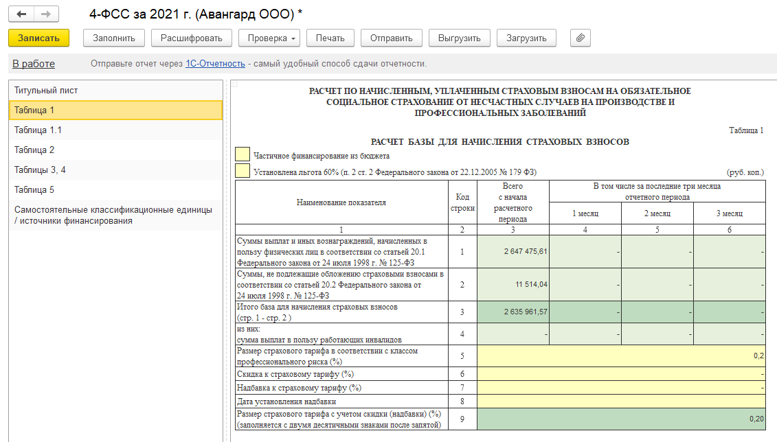 Страхвзносы «на травматизм» возникают, если в договоре ГПХ указано это условие. В такой ситуации размер вознаграждения нужно поставить в графе 1 таблицы 1 расчета. Если в договоре ГПХ не указана обязанность страхователя платить взносы «на травматизм», тогда размер выплаты не нужно указывать в таблице 1 отчета 4-ФСС ни в одной из граф.