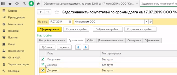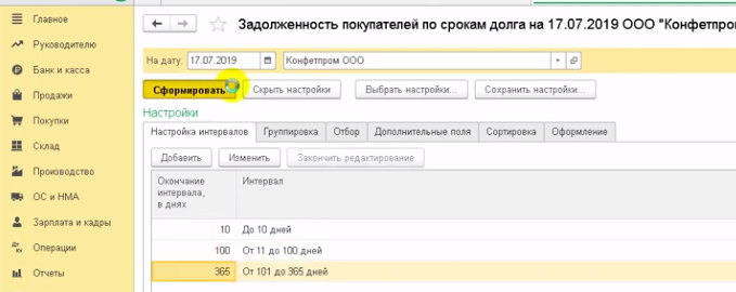 Сформируем отчет - задолженность покупателей по срокам долга из раздела отчетов для руководителя.