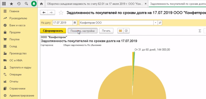 Теперь сумма задолженности покупателей совпадает с данными оборотки.
