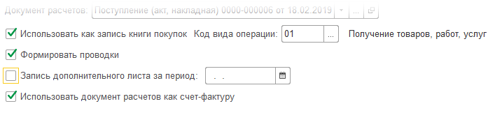 - В случае, если позиция «Использовать как запись книги покупок» не будет выбрана, то налог отразиться в позиции «к вычету», аналогично поступающим документам. В такой ситуации, чтобы книга покупок содержала соответствующую запись, необходимо дополнительное введение документа форматирования.