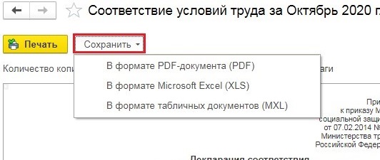 Декларация соответствия условий труда в 1С