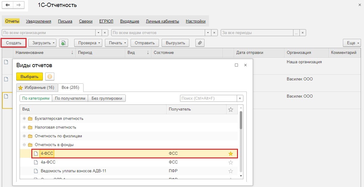 Отчет 4-ФСС в 1С