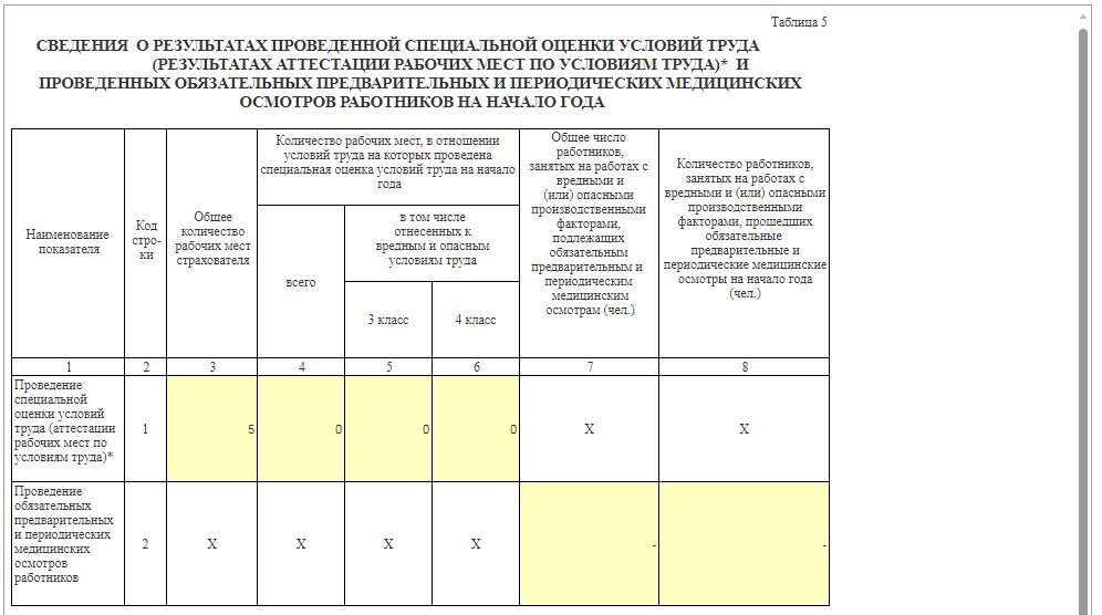 Внимание! Информацию по результатам СОУТ и медосмотрам нужно указывать по состоянию на начало года.