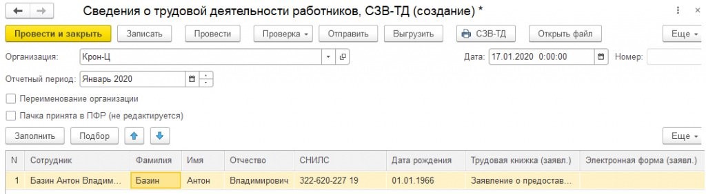 Подготовка и автоматическое заполнение отчётов СЗВ-ТД и СТД-Р в 1С