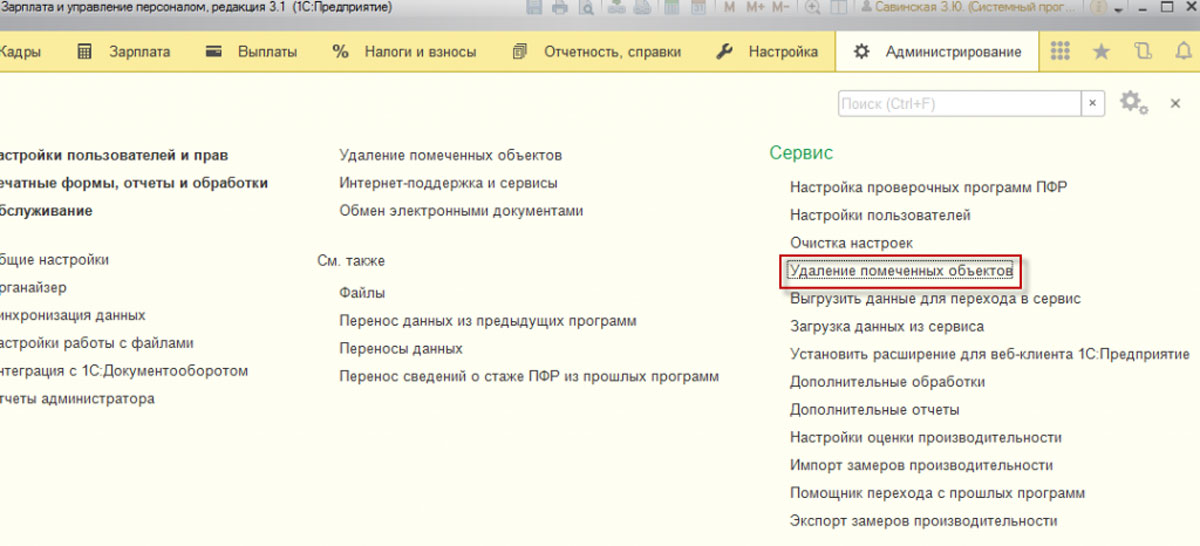 Для завершения процедуры используем сервис «Удаление помеченных объектов».