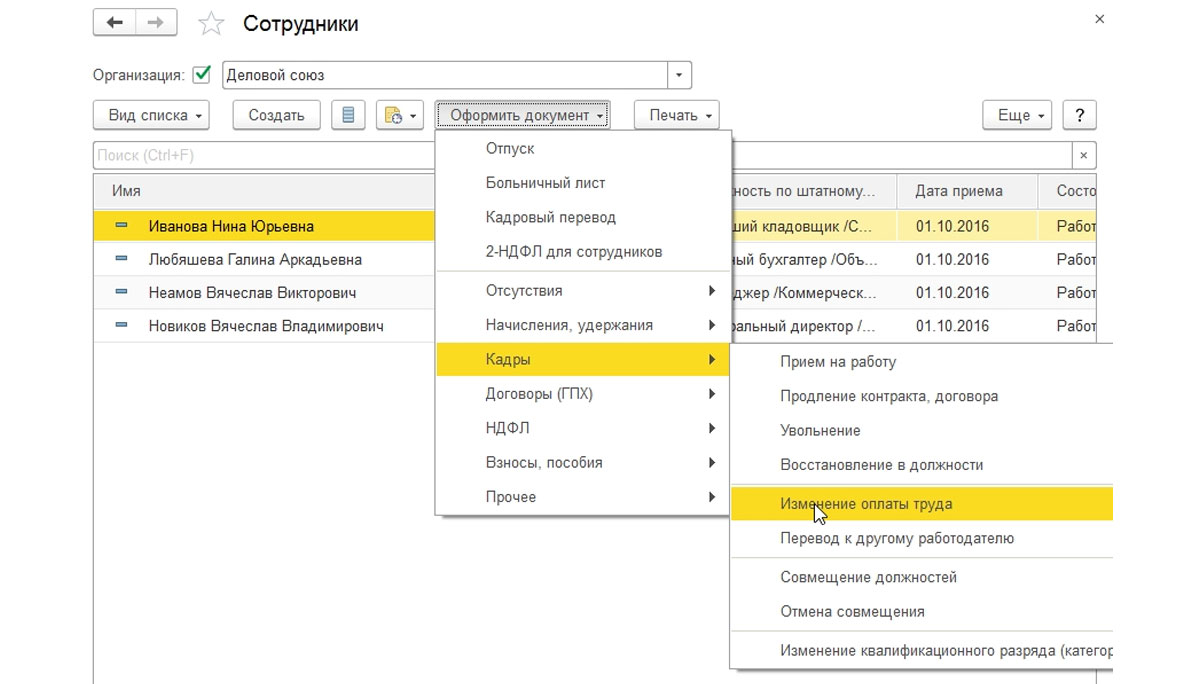 Как принять нового сотрудника в 1С Предприятие 8.3