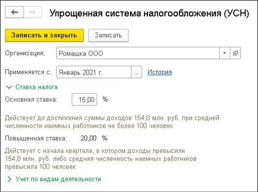 Как с 2021 г. налог по УСН рассчитывается в 1С:Бухгалтерия