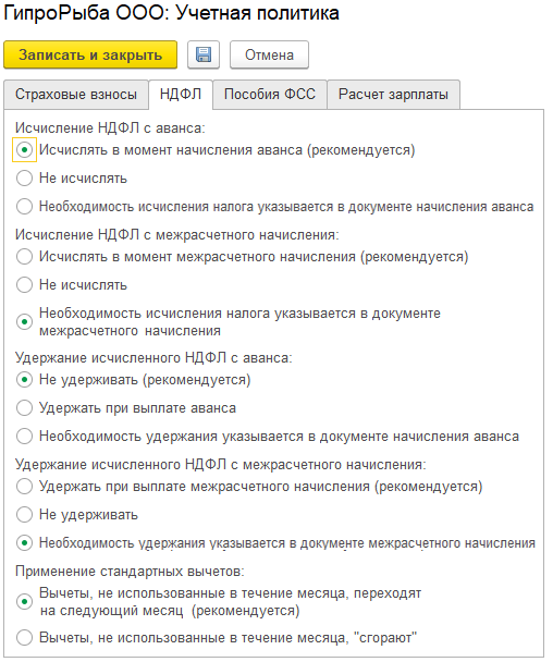 При этом варианте можно также установить правило расчета. То есть предусмотреть удержание НДФЛ, но не фактические его уплачивать. Это необходимо для корректности будущих расчетов по налогам. В учетной политике организации это также можно указать и перенести порядок в электронный вид.