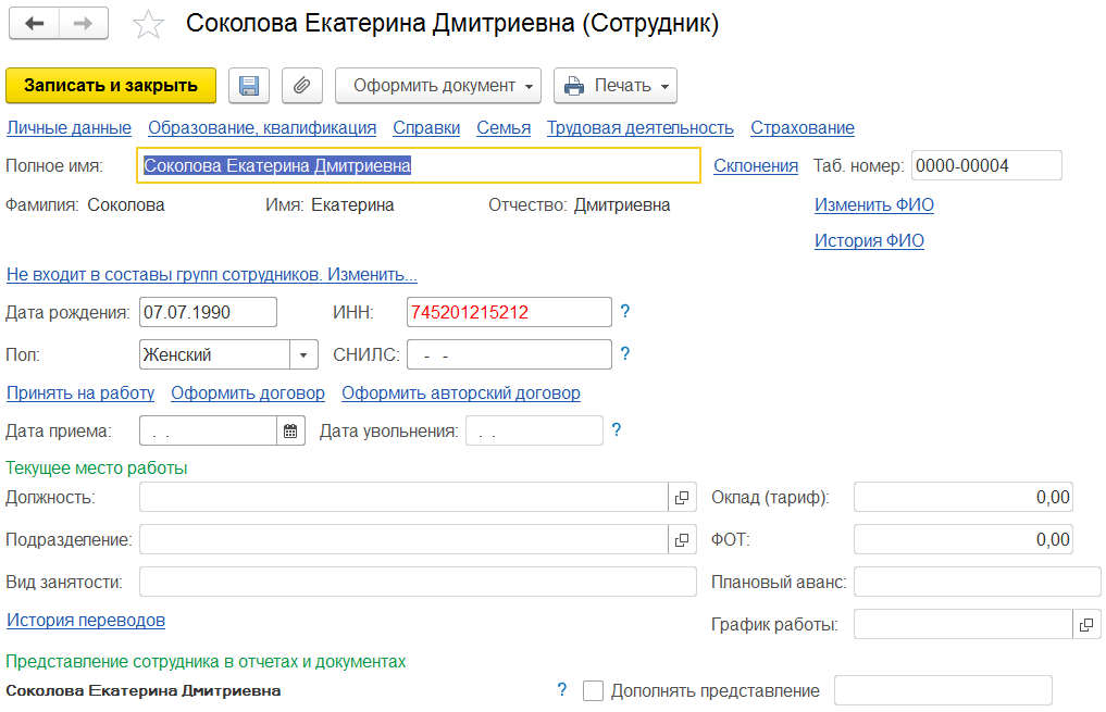 Шаг 2. Заполняем кадровую информацию