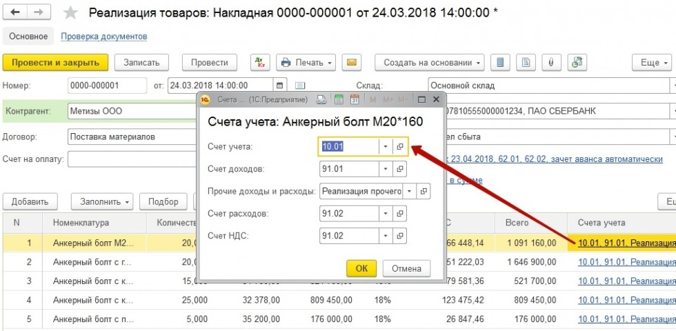 Если пользователь правильно настроит счета учёта в 1С 8.3, то он получит корректное отражение проводки по продаже материалов. Корректировка доступна прямо в форме по ссылке.