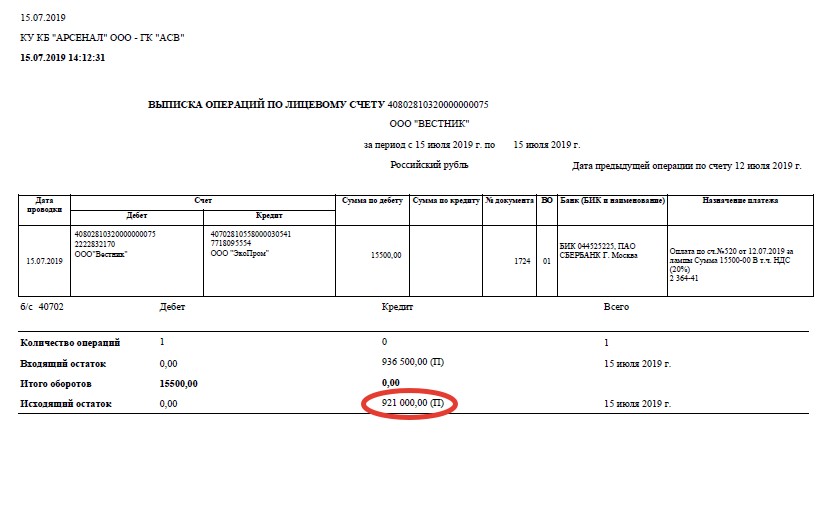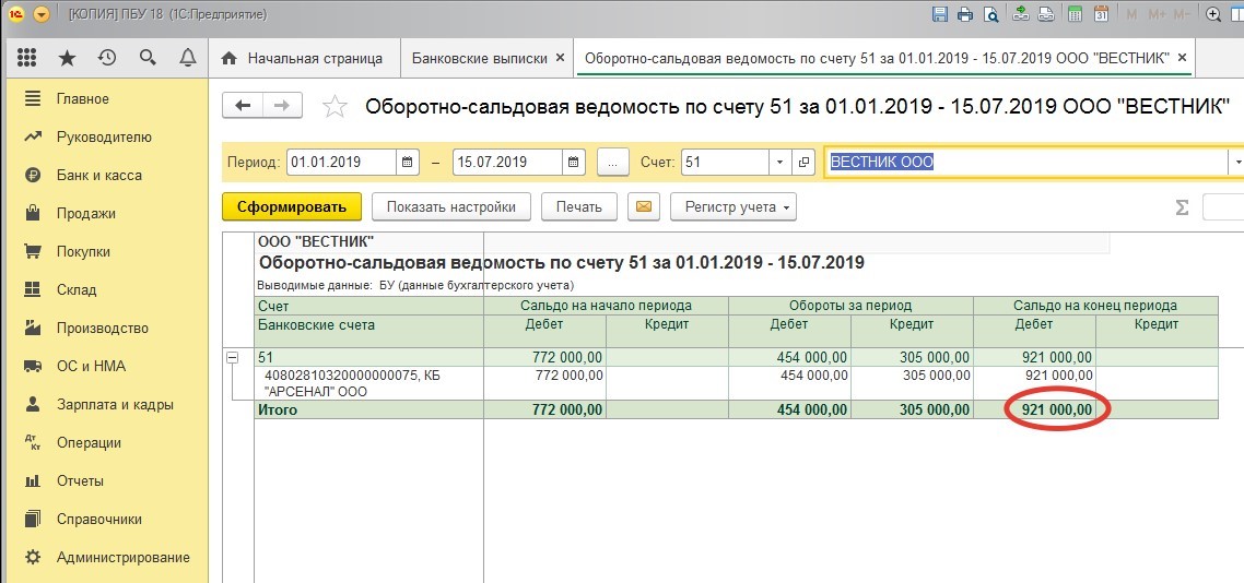 Сравниваем остатки по денежным средствам по расчётному счету банковской выписки с конечным сальдо – они должны быть одинаковыми.