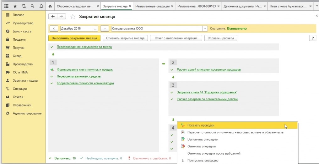 Реформация - последний этап, который следует выполнить при закрытии декабря. Ее не получится осуществит в случае, если осталась хоть одна незавершенная операция. Для закрытия месяца нужно нажать одноименную кнопку.