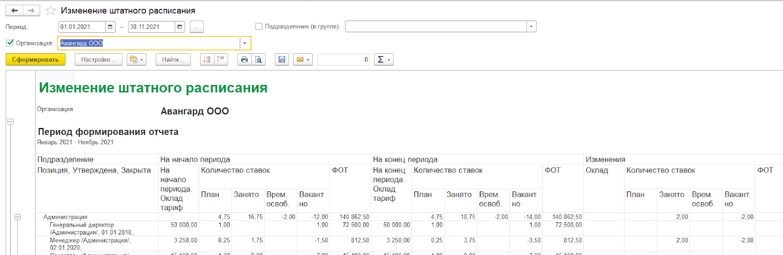 Отчетность формируется по утвержденным и незакрытым позициям. Некоторые отчеты целесообразно составлять после приема на работу сотрудников.