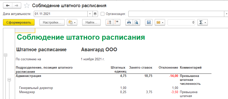 При оформлении кадровых документов они в автоматическом режиме проверяются, соответствуют ли штатному расписанию. К примеру, анализируется количество свободных ставок.