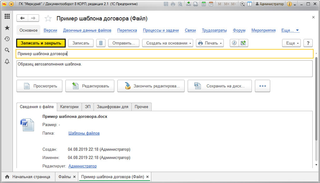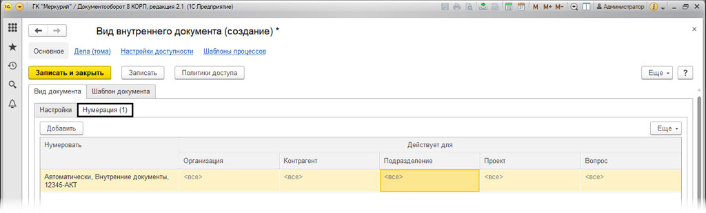 Называем его, например, "Пример шаблона договора" и в настройках ставим галочки на "Использовать срок исполнения ", после на "Является договором". Если необходимо включить документ в нужную группу, то вам потребуется задать индекс нумератора. Так называемый суффикс либо префикс документа.
