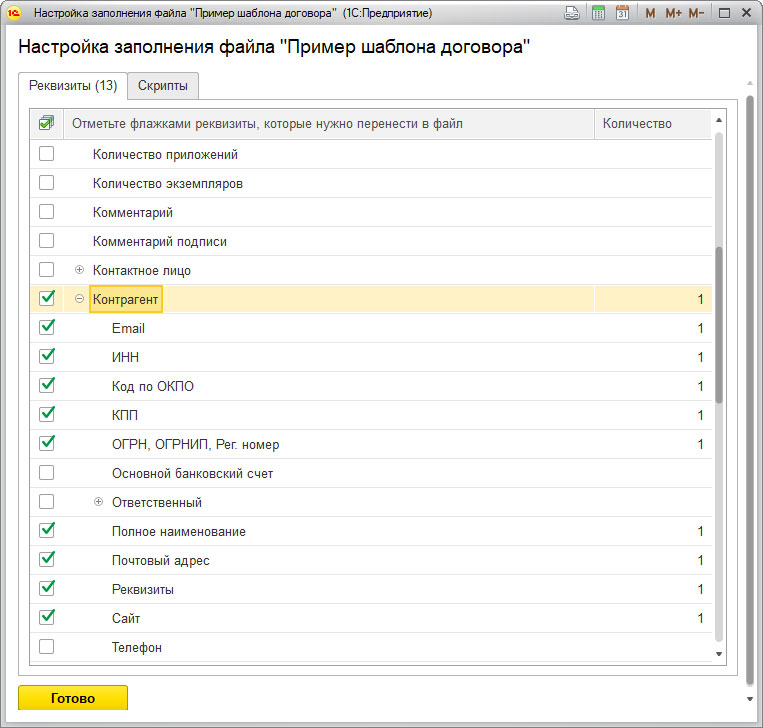 После всех этих махинаций, наша система будет автоматически заполнять реквизиты. При работе с шаблонами повышается скорость работы. Также, уменьшается количество ошибок.