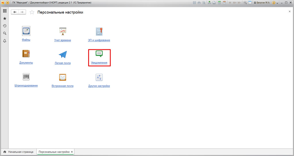 Если администратор разрешил поменять все настройки уведомлений по умолчанию, то для внесения своих изменений вам потребуется перейти в раздел "Настройки", после чего переходим "Персональный настройки".