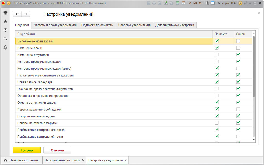 Для быстрой реакции пользователя на сообщение, в программе 1C Документооборот существует специальный функционал оповещений. Всего есть несколько способов уведомления. Каждый пользователь сможет настроить их индивидуально под себя. В этой статье, мы научимся настраивать эти функции.