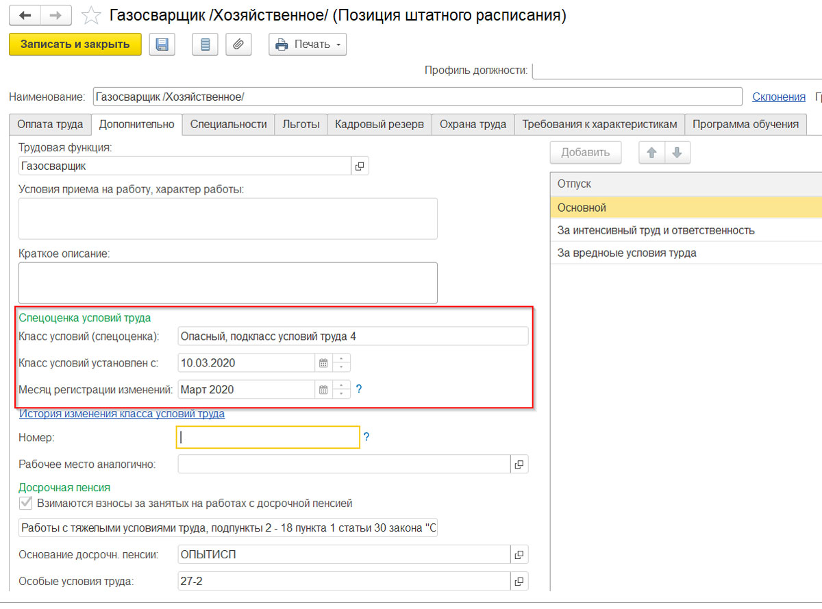 Спецоценка условий труда (СОУТ) в 1С:ЗУП