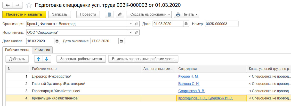 Когда будут формироваться документы, аналогичные рабочие места возникнут автоматически. (в рассматриваемом примере мы не станем их выделять).