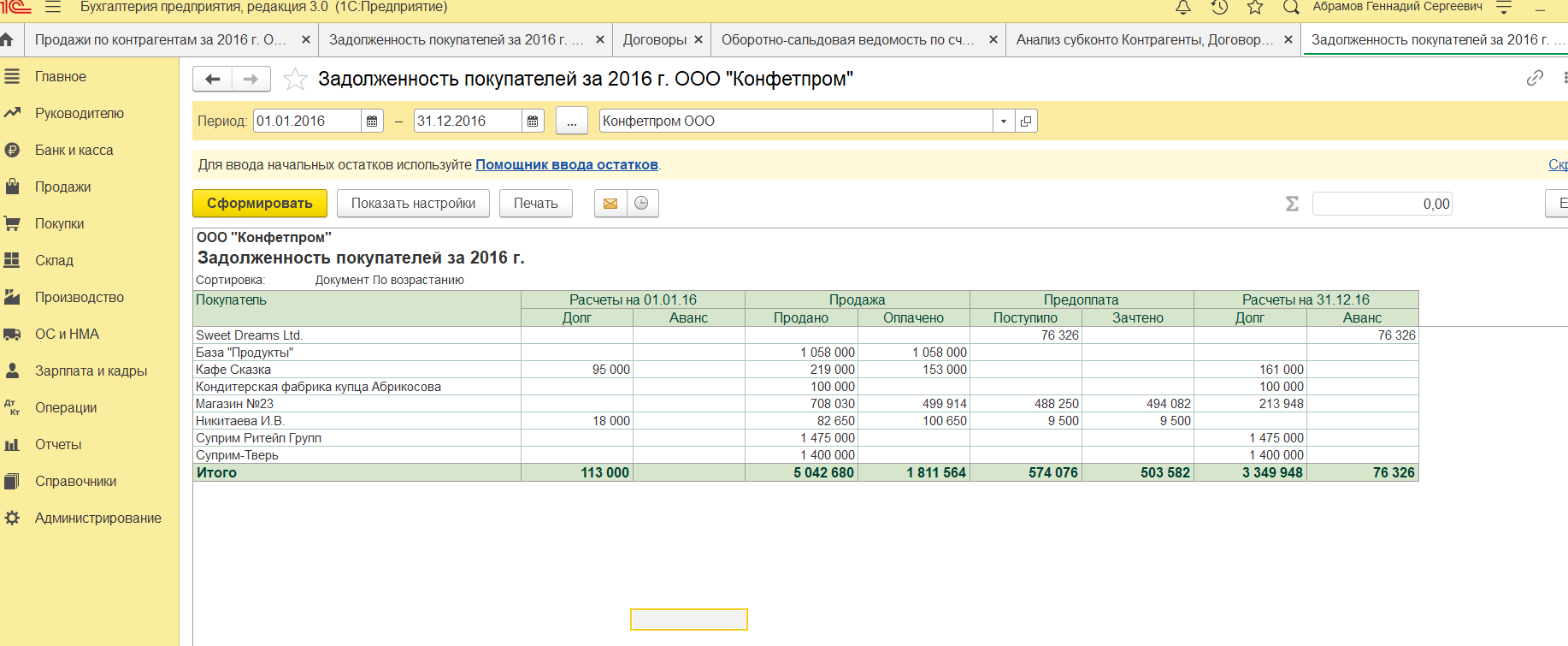 Типовые отчеты для анализа дебиторской и кредиторской задолженности