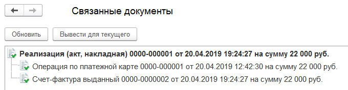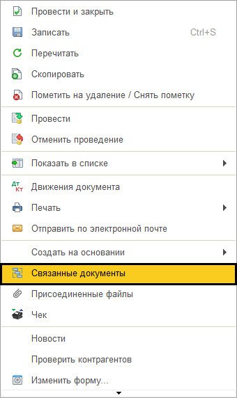 Так можно быстро перейти к каждому документу из введённых на основании текущего.