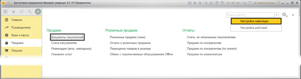 Если вы затрудняетесь обнаружить, где сформированный документ "Операция по платёжной карте", то, использовав кнопку "Настройки" и команду "Настройка навигации", можно переместить на рабочий стол необходимые информационные данные.