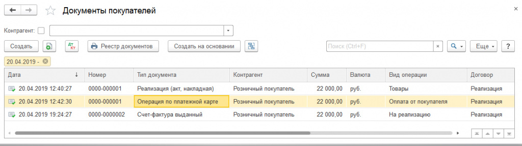 После открытия "Документов покупателей" человек получает доступ ко всем соответствующим документам, в том числе и к нужной "Оплате платёжной картой".