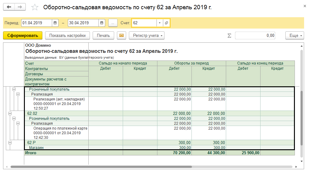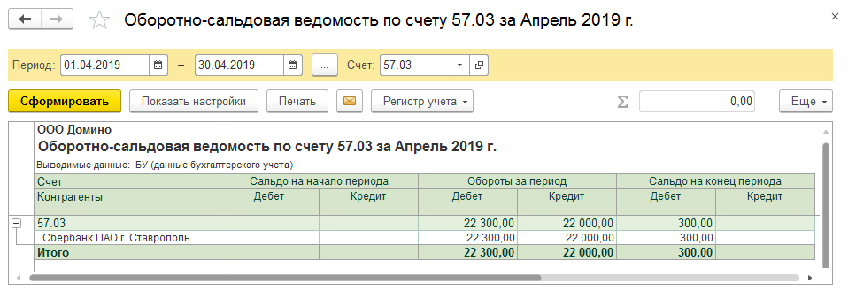 Чтобы убедиться, что всё было проведено правильно, бухгалтер смотрит в оборотно-сальдовую ведомость.