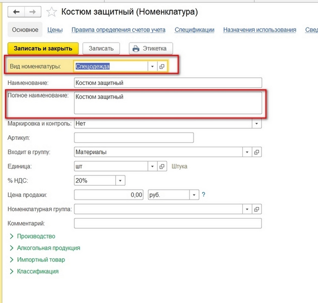Приход спецодежды после поставки происходит в соответствие с положениями, применяемыми при оформлении других видов материальных ценностей. Главным требованием выступает правильный выбор типа материалов в справочнике номенклатуры, где необходимо найти Спецодежду. В этом случае приход сразу же будет оформлен на счет 10.10.