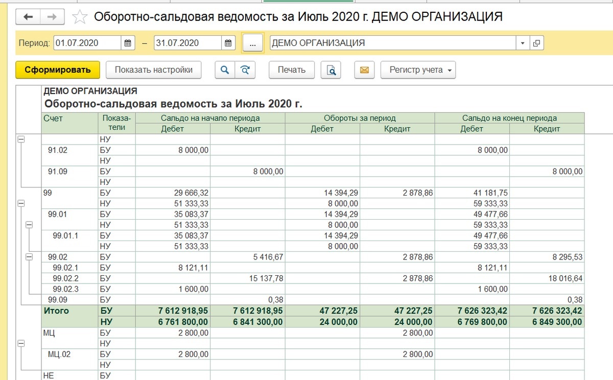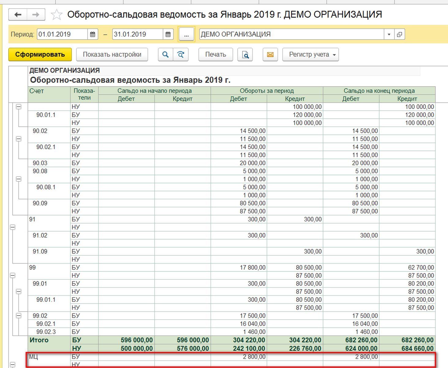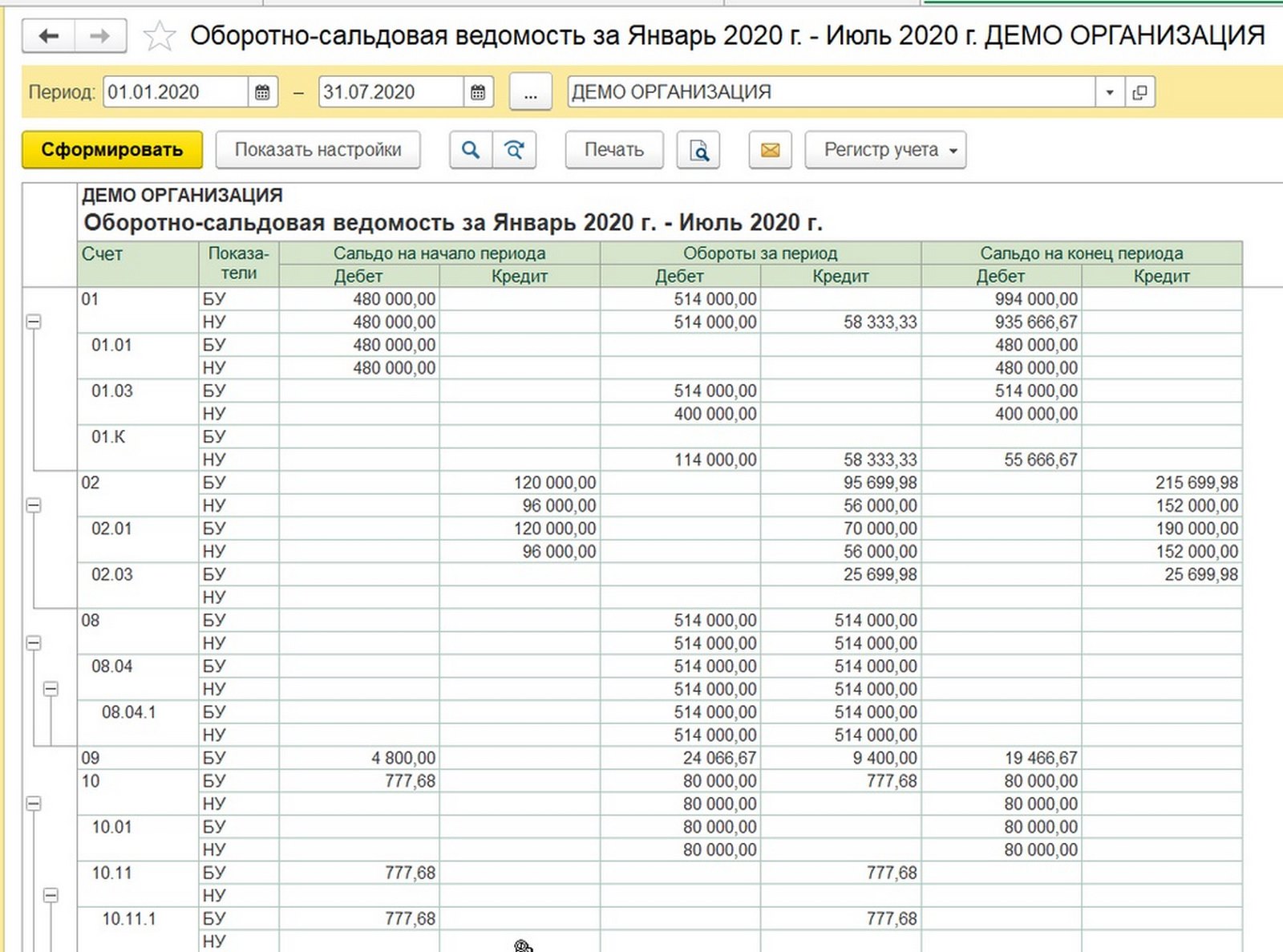 После внесения всех данных можно создать оборотно-сальдовую ведомость для конкретного месяца до его закрытия.