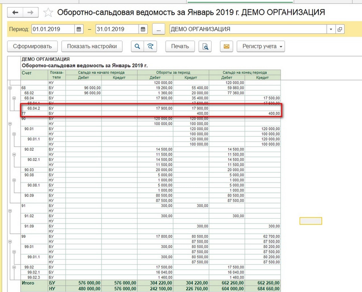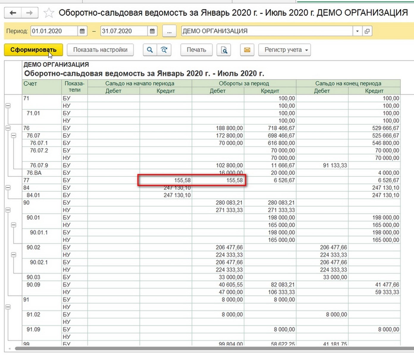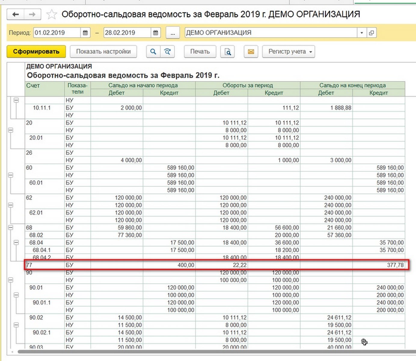 После внесения всех данных можно создать оборотно-сальдовую ведомость для конкретного месяца до его закрытия.