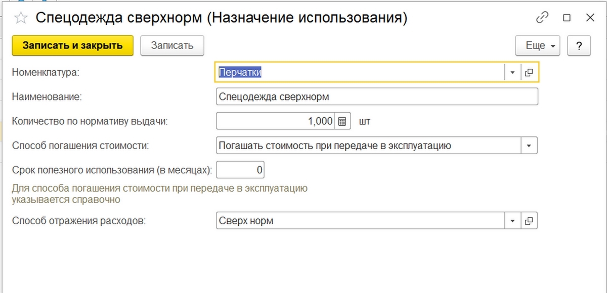 В тоже время пока не проводились списания расходов при использовании защитных костюмов. Благодаря использованию стандартного функционала 1С:Бухгалтерия списание линейной амортизации для различных видов спецодежды производится каждый месяц, начиная со следующего после начала использования. Однако настолько тонкие методологические моменты не отражаются в законодательстве. Поэтому бухгалтер может просто воспользоваться предложенным решением, закрепив алгоритм. Таким образом можно будет избежать возможных разногласий с представителями проверяющих органов.