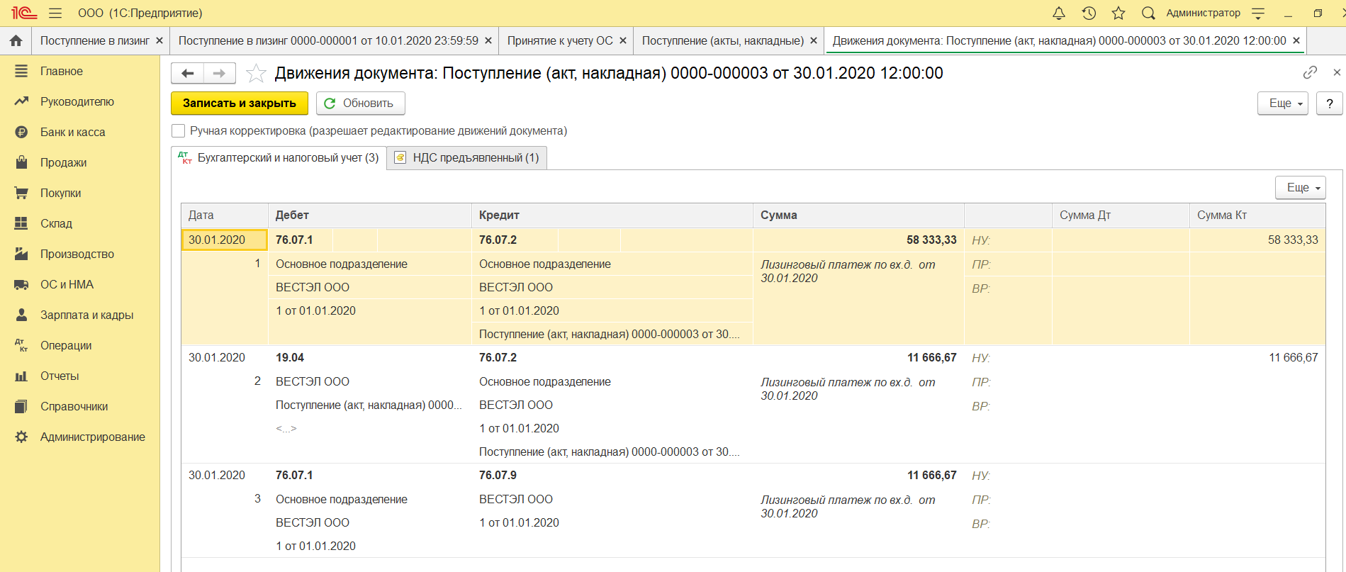 Учет лизинга в 1С