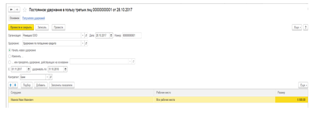 Наряду с этим, удержание стоит создать лишь раз и использовать в дальнейшем и для других сотрудников.