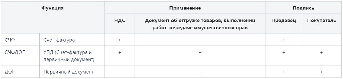 В случае с УПД с первым статусом можно применять каждый формат, со вторым статусом – только ДОП и СЧФДОП.